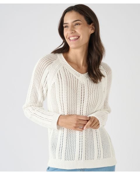 Pointelle Stripe V-Neck Jumper
