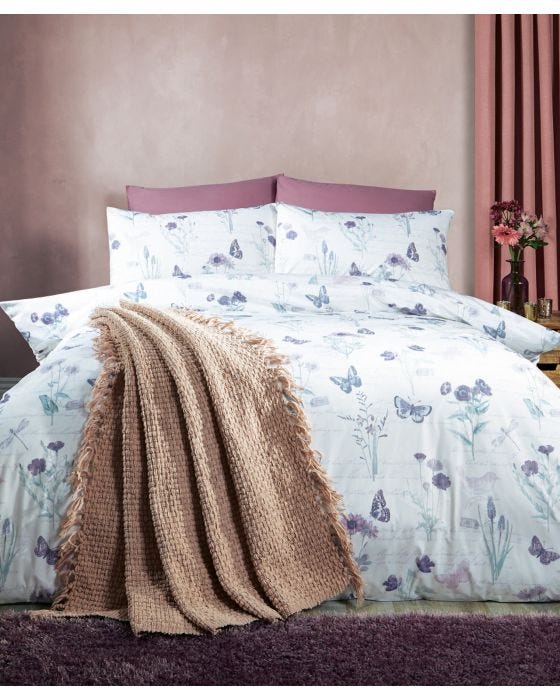 Simply by adding new bedding, you can give your bedroom a great new look, and this duvet and pillowcase set is a great option for a country style home, in a butterfly and floral design. Machine washable. 52% Polyester, 48% Cotton. Set includes duvet cover and 1 pillowcase with single, 2 with double/king.